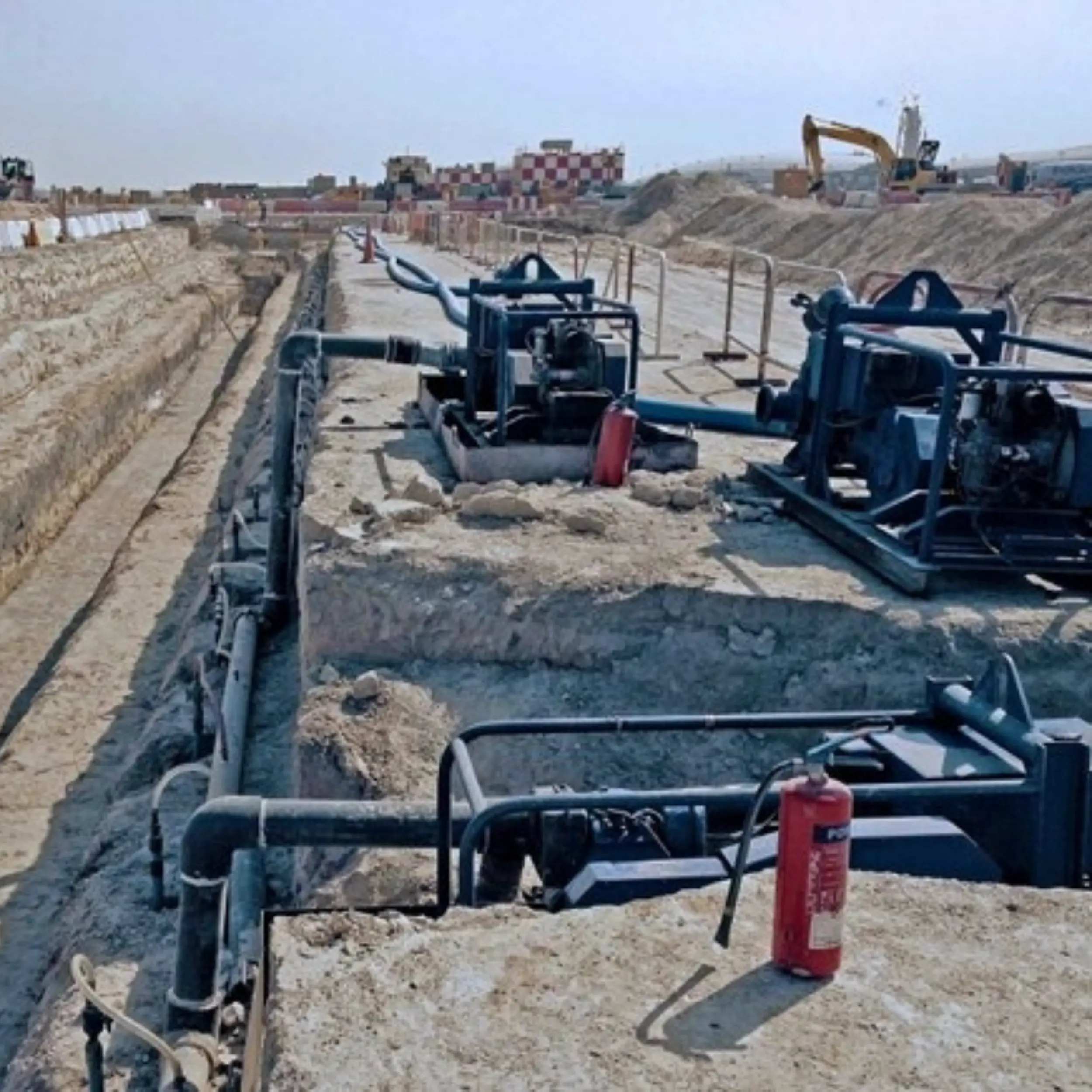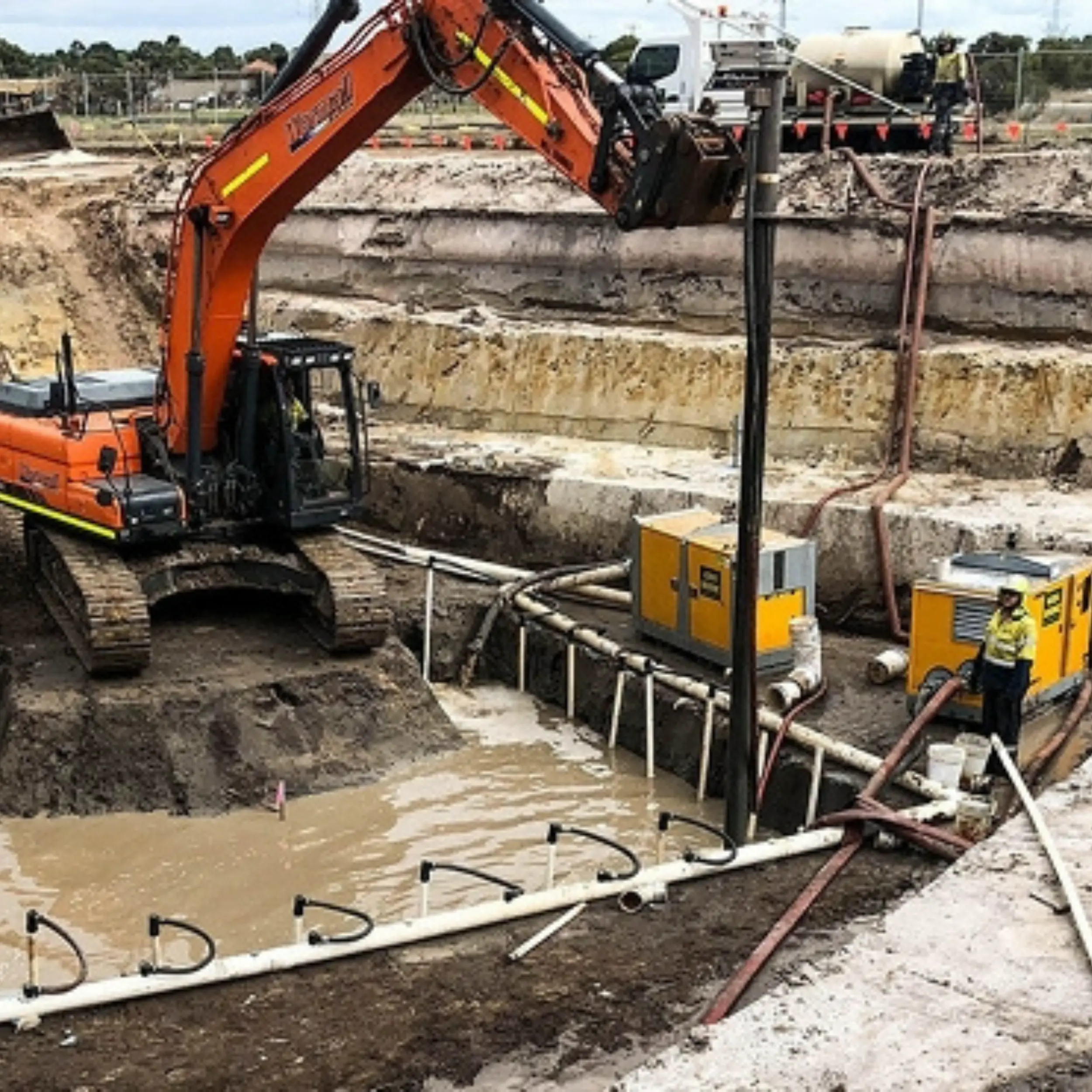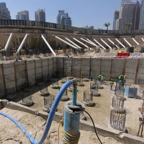 Method for removing surface and groundwater from excavation sites to create a dry and stable working environment. Essential for safety, soil stability, and successful completion of below-ground projects.
